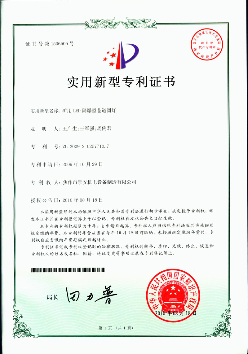 焦作景安公司始終堅持“以科技為先導(dǎo),以市場為導(dǎo)向”的發(fā)展戰(zhàn)略,不斷進行新產(chǎn)品的研制和開發(fā),在國家“六五”到“九五”期間,承擔(dān)和參與了國家多項科技攻關(guān)項目。并被中國電器工業(yè)協(xié)會評定為“質(zhì)量可信產(chǎn)品”。特別是在礦用防爆燈領(lǐng)域,礦用隔爆型半導(dǎo)體(LED)照明燈具,2008年列入國家火炬計劃,獲2009年河南省工業(yè)和信息化廳的科技成果二等獎,并擁有多項國家專利。